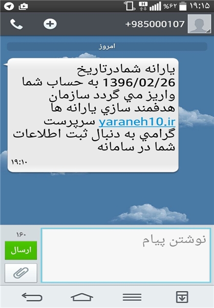 نودیها:چندین نفر از شهروندان اعلام کردند، سازمان هدفمندسازی یارانهها در آستانه انتخابات ریاست جمهوری با ارسال پیامک به برخی شهروندان