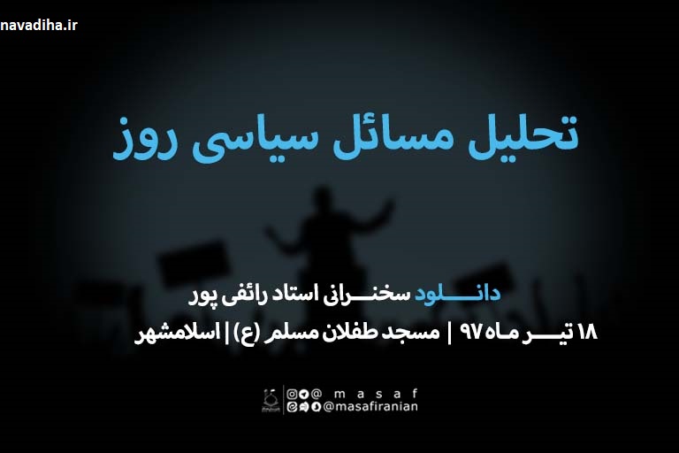 سخنرانی استاد رائفی پور:تحلیل مسائل سیاسی روز /١٨ تیر ٩٧ تهران (اسلامشهر) دانلود انصارکلیپ بازدیدها: 27