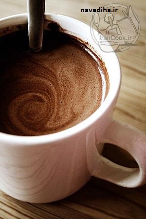 نودیها:شیر ۱ لیوان . شکلات تخته ای 100 گرم . نسکافه ۱ قاشق چایخوری پودر کاکائو ۲ قاشق چایخوری
