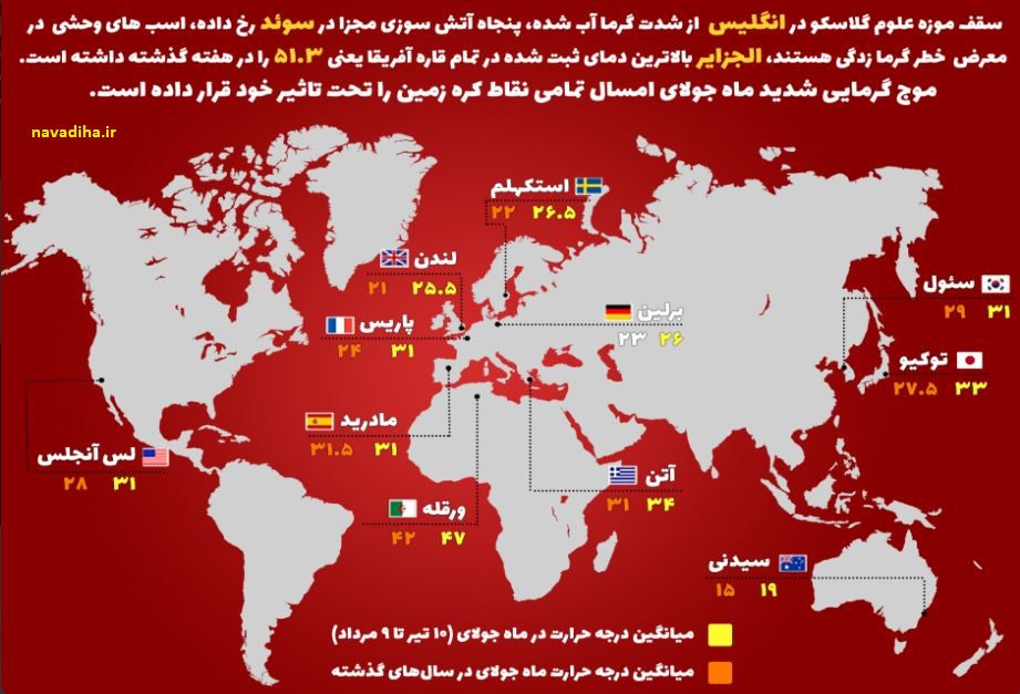 در ادامه اینفوگرافی مربوط به شدت و آثار مخرب گرما در اقصی نقاط جهان را مشاهده می کنید.
