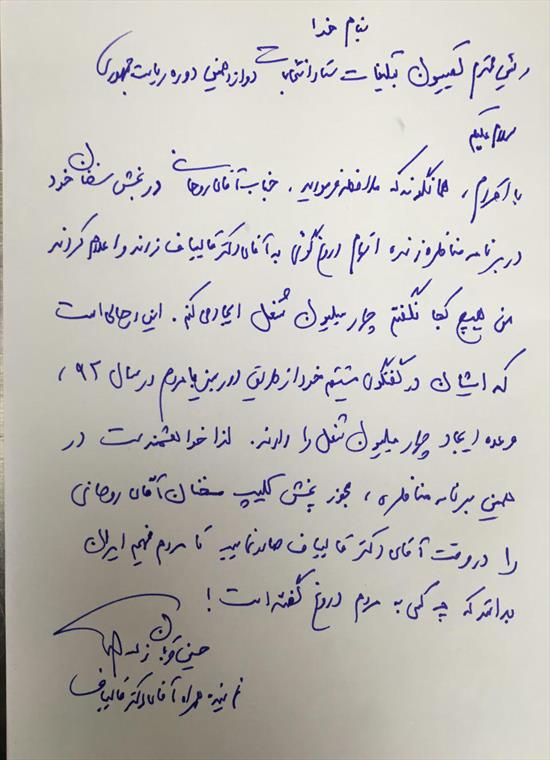 در طی سخنانی که بین دکتر روحانی و دکتر قالیباف در اولین مناظره انتخاباتی ٩۶ رد و بدل شد؛ ستاد انتخاباتی دکتر قالیباف اعتراض نامه ای را خطاب به کمیسیون تبلیغات تنظیم کرد.