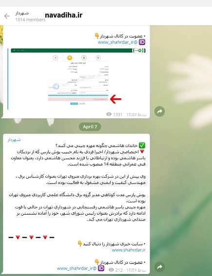 نودیها:کانال شهردار از حامیان نجفی نوشت: اخیرا فردی به نام حبیب پوش پارس که از نزدیکان یاسر هاشمی بوده و ارتباطاتی با فرزند محسن هاشمی دارد، بعنوان معاون فنی عمرانی منطقه ۱۴ منصوب شده است.