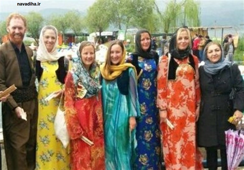 «آنا» خانمی فرانسوی است که لباس کردی آبی به تن دارد و میگوید لباسش را خیلی دوست دارد.