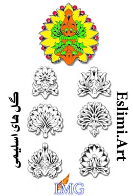 این گل های اسلیمی با بک گراند سفید ارائه شده اند . شما می توانید مانند نمونه آن را رنگ آمیزی ودر طرح های خود استفاده کنید .