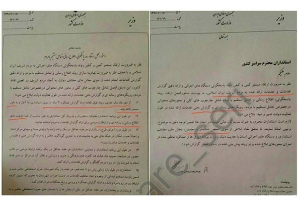 این انکارهای صریح و تکذیب در روز روشن در حالی است که ابلاغیه جنجالی ۱۹ ماده ای به شماره ۱۳۱۰۷۹ و در تاریخ هشتم دی ماه سال جاری با امضای شخص وزیر کشور به استانداران سراسر کشور ارسال شده است.