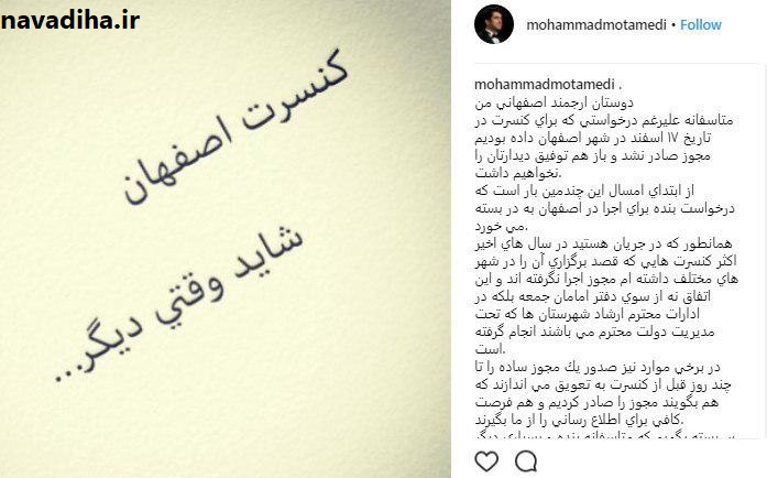1 آخرین مطالب اخبار اخبار روزمحمد معتمدی پس از لغو کنسرتش در اصفهان در اینستاگرام نوشت: لغو کنسرتها توسط دولت است نه امامان جمعه موسوی - مدیر اصلی8 سال ago1 ماه ago00 mins برای امتیاز دادن به این مطلب اینجا کلیک کن [کل آراء: 0 میانگین: 0] راهبری نوشته Previous: بیش از ۴ هزار آقازاده در انگلیس تحصیل میکنند، عمده آنها به کشور باز میگردند و سهمخواهی میکنند!Next: اظهارات جنجالی آیتالله حیدری به گریه های رئیسجمهور در روزهای خاکی اهواز! دیدگاهتان را بنویسیدنشانی ایمیل شما منتشر نخواهد شد. بخشهای موردنیاز علامتگذاری شدهاند *دیدگاه * نام ایمیل وب سایت