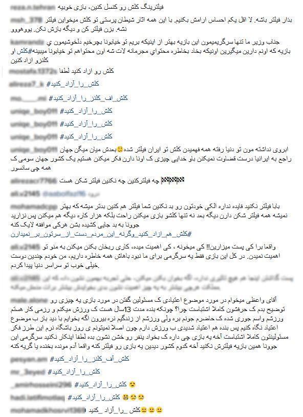 اما پس از انتشار این خبر، کاربران علاقهمند به این بازی به صفحه اینستاگرام محمود واعظی، وزیر ارتباطات هجوم برده و به این تصمیم انتقاد کردند و خواستار رفع فیلتر آن شدند. برخی از کامنتها را مشاهده میکنید.