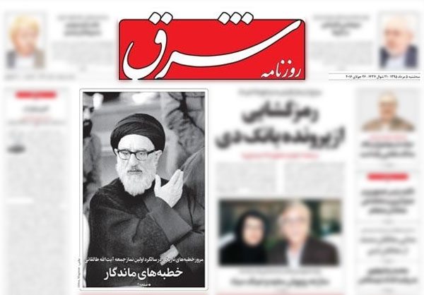 نودیها: روزنامه شرق روز سه شنبه(۹۵/۵/۵) به مناسبت سالروز برگزاری نخستین نمازجمعه پس از انقلاب، عکسی سانسور شده از آیت الله سید محمود طالقانی را در صفحه نخست خود کار کرد؛ عکسی که در آن سیگار آیت الله طالقانی سانسور شده بود.
