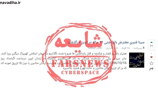 نکته قابل توجه این است که محمودصادقی میداند سینا قنبری قاچاقچی موادمخدر بوده که چندماه پیش دستگیرشده اما به گونه ای حرف میزند تا از او قهرمان بسازد. قطعا منابع اطلاعاتی که خودکشی وی را تایید کرده اند به این نماینده که پیش از این سابقه های متعددی در انتشار اخبار کذب دارد اطلاع داده اند که سینا قنبری به چه دلیل دستگیر شده است.