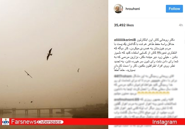نودیها:صفحه اینستاگرام حسن روحانی رئیس جمهور کشورمان ساعاتی پیش مطلبی را درباره وضعیت استان خوزستان منتشر کرد.