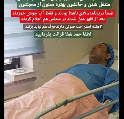 نودیها:مهدی حدادیان، فرزند سعید حدادیان از انتقال این مداح اهل بیت(ع) به بخش داخلی خبر داد. روز گذشته سعید حدادیان مورد عمل جراحی قرار گرفته است و آن طور که فرزندش عنوان کرده وی با استراحت ۴ هفتهای روبرو است و در این مدت نباید صحبت کند. فارس