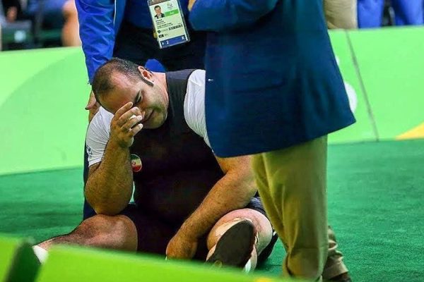 مدال طلای ملی پوش پرتاب نیزه با عکس رهبری روی پیراهنش