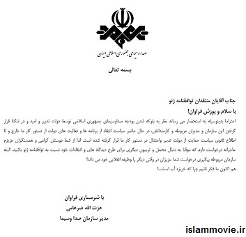 طنز – عکس نامه ضرغامی به منتقدین توافقنامه ژنو