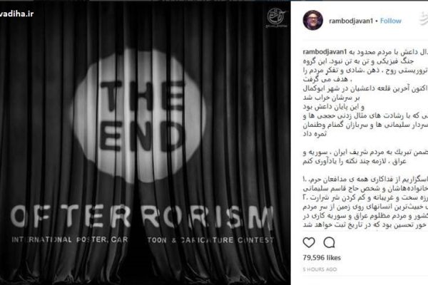 نودیها:رامبد جوان، مجری، بازیگر و کارگردان کشورمان در صفحه شخصی اینستاگرامش نوشت: پایان رویای خلافت جدال داعش با مردم محدود به جنگ فیزیکی و تن به تن نبود. این گروه تروریستی روح، ذهن، شادی و تفکرِ مردم را هدف می گرفت اما اکنون آخرین قلعه داعشیان در شهر ابوکمال بر سرشان خراب شد. و…