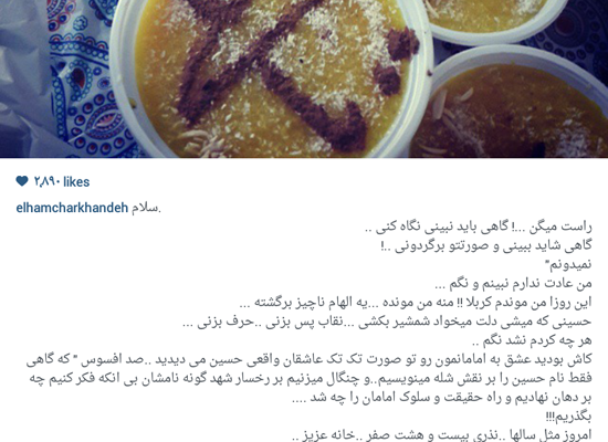 اخبار بازیگران و سینما الهام چرخنده بازیگر محبوب سینما و تلویزیون در صفحه شخصی اش در اینستاگرام تصویری از نذری اش منتشر کرد. تصویر در ادامه