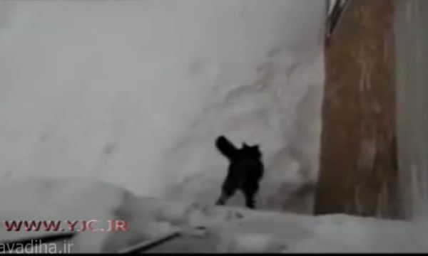 کلیپ بسیار جالب پریدن گربه در برف