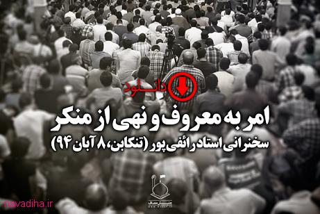 سخنرانی استاد رائفی پور با موضوع مهم امر به معروف و نهی از منکر ـ تنکابن ـ ۸ آبان ماه ۱۳۹۴ دانلودصوت با حجم ۴۶ مگابایت از لینک مستقیم منبع : جنبش مصاف