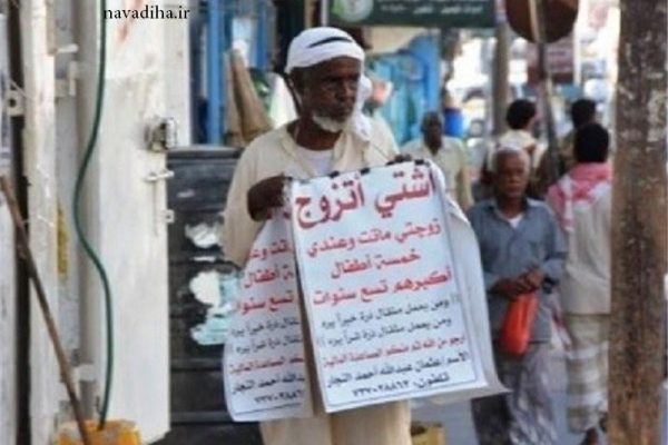 نودیها : مردی یمنی که همسرش را از دست داده با روشی ابتکاری به دنبال یافتن همسر است. تصویری در شبکههای اجتماعی منتشر شده از مردی یمنی از استان حضرموت یمن که با روشی ابتکاری به دنبال همسری برای خود است. وی پلاکاری روی خود نصب کرده و نوشته است: میخواهم ازدواج کنم. همسرم فوت…